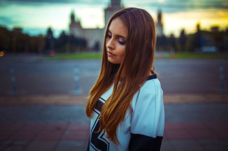 Красивая девушка на фоне Москвы.