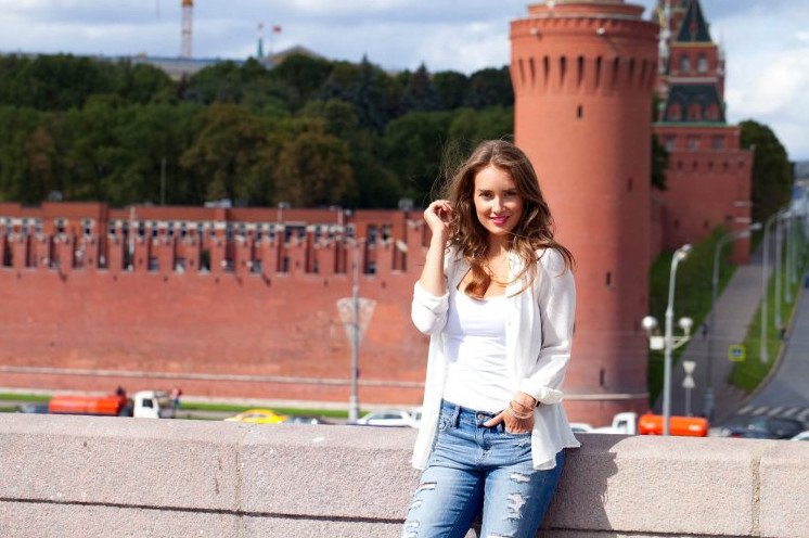 Красивая девушка у Кремля.