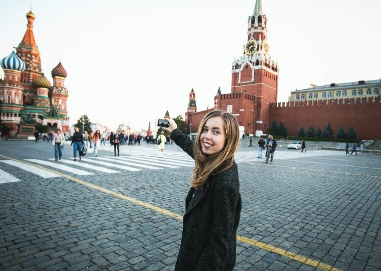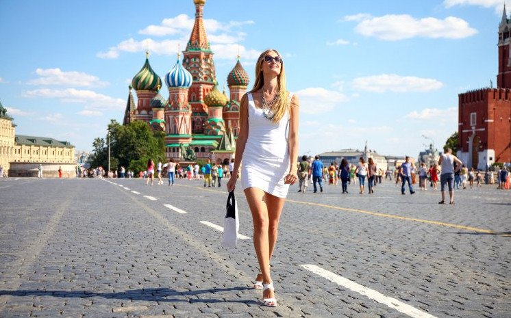 Красивая девушка на фоне красной площади.
