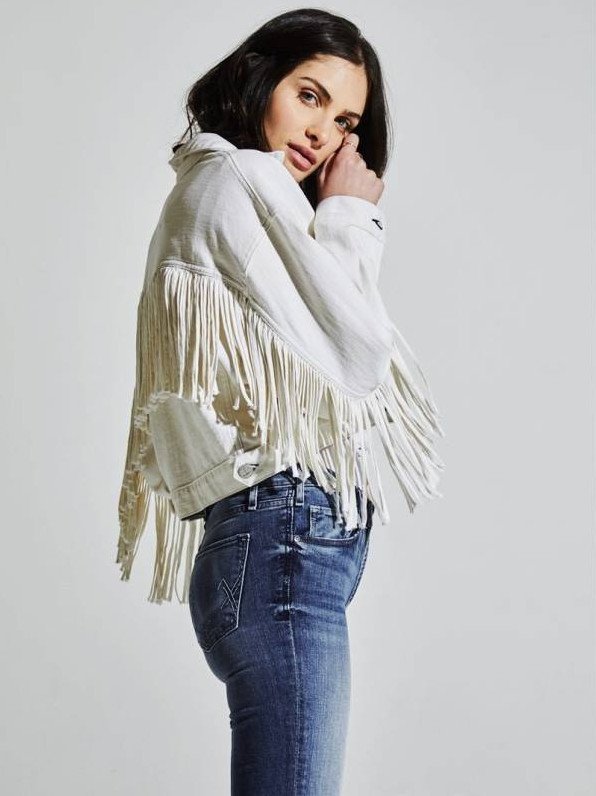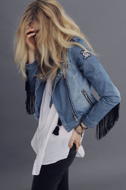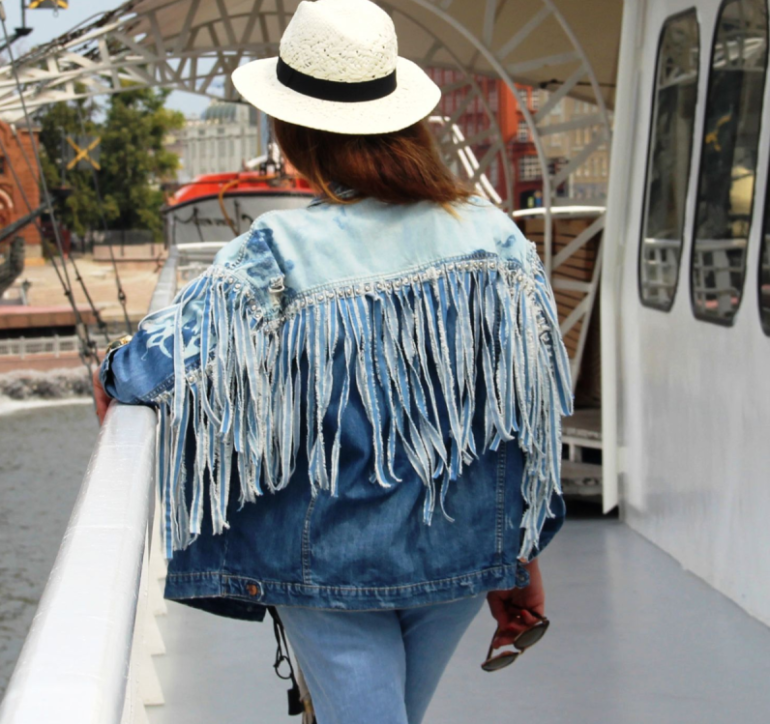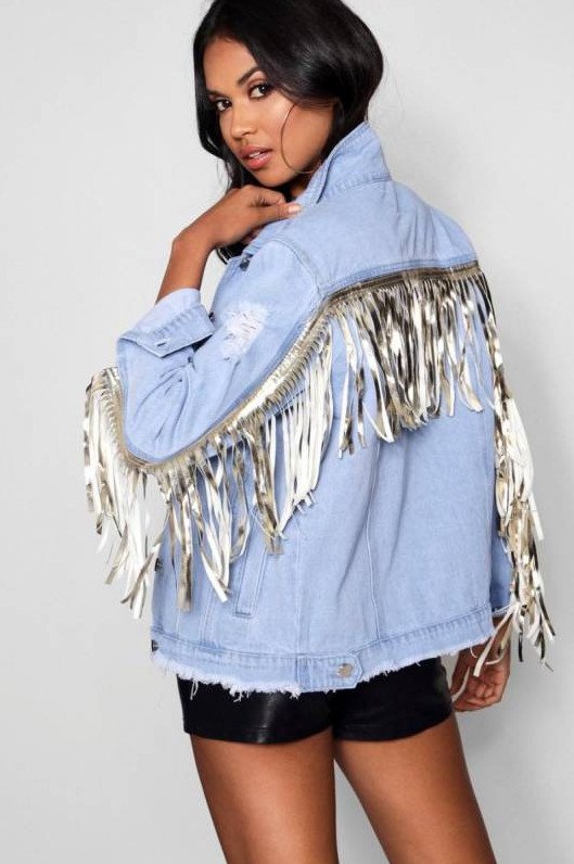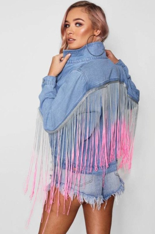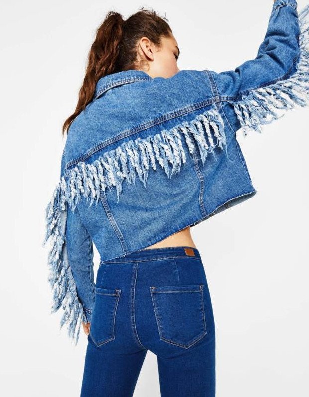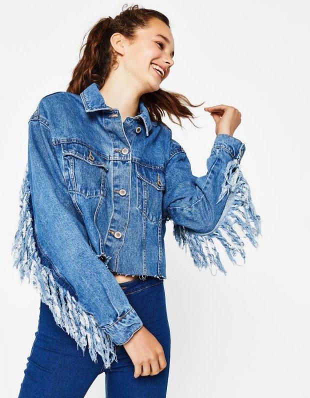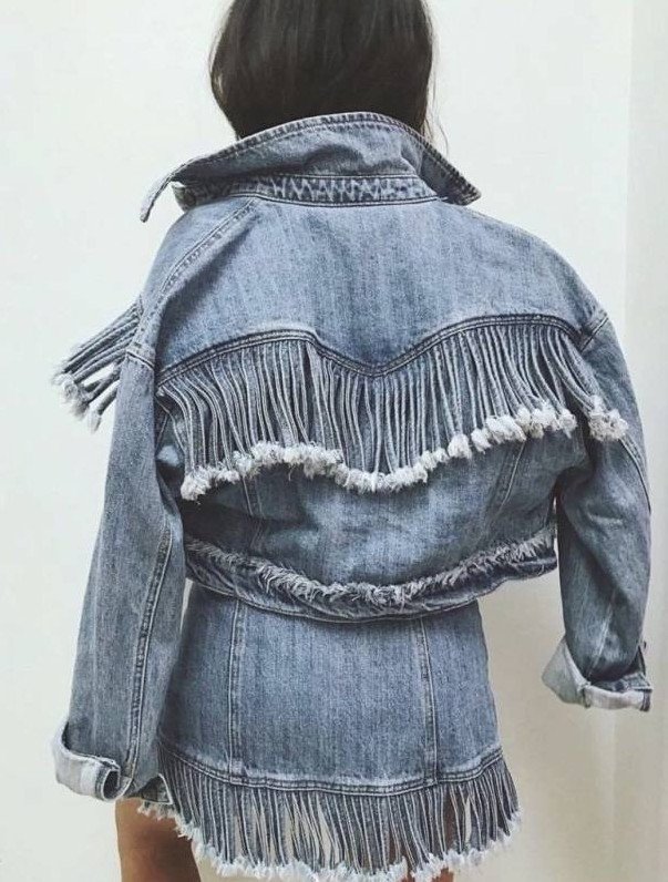 Джинсовая куртка с бахромой.