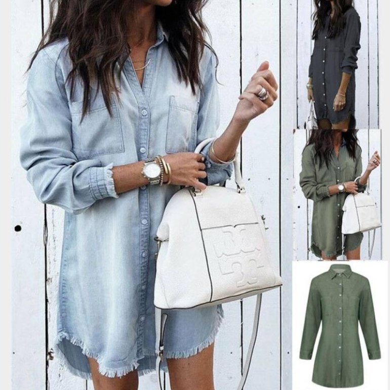 Джинсовое платье-рубашка светлое.
