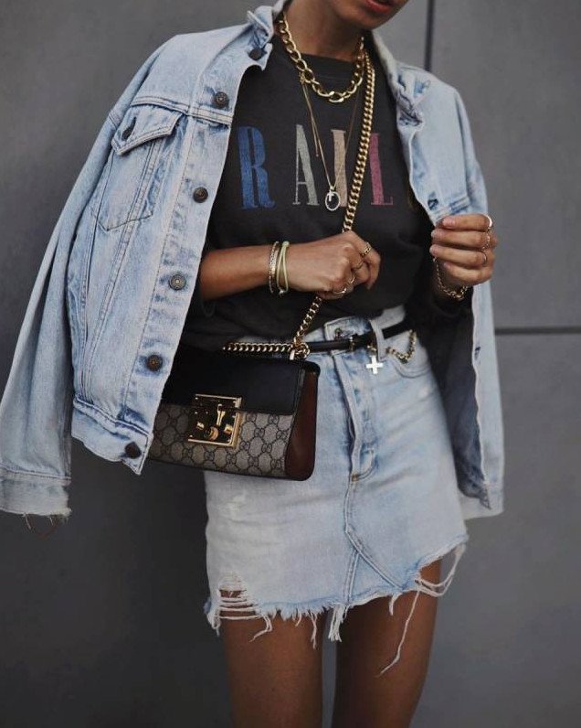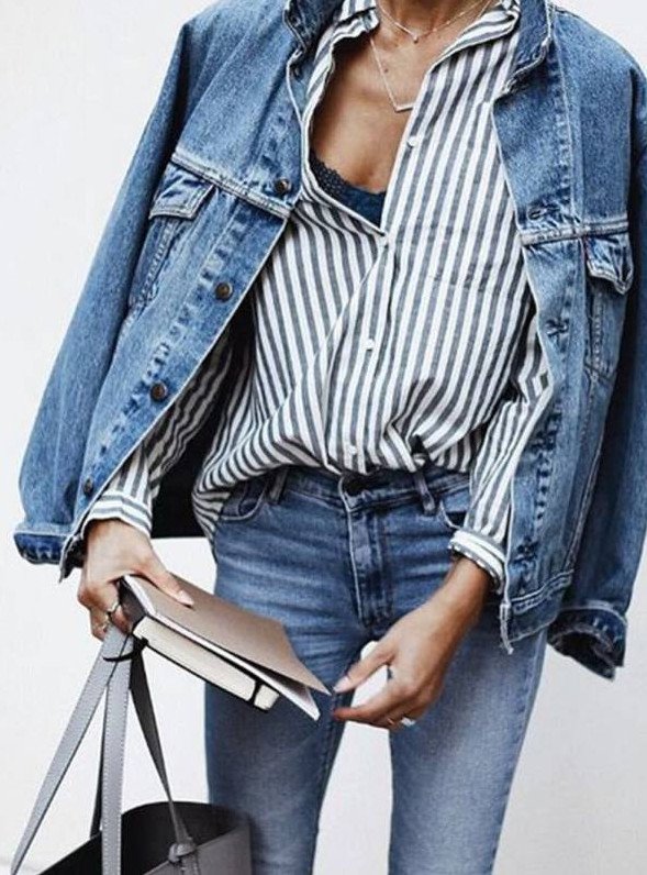 Лук с джинсовой курткой.