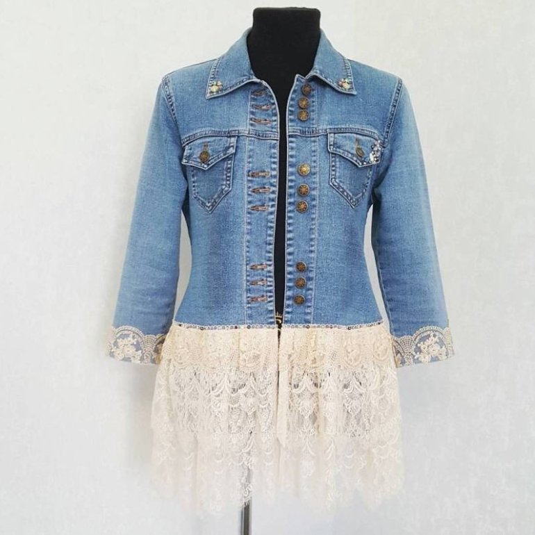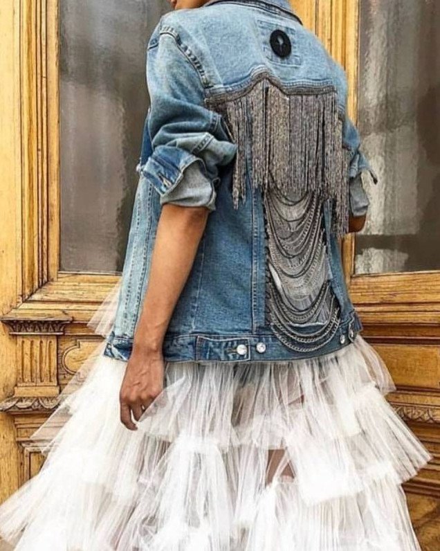Джинсовая куртка с висюльками.
