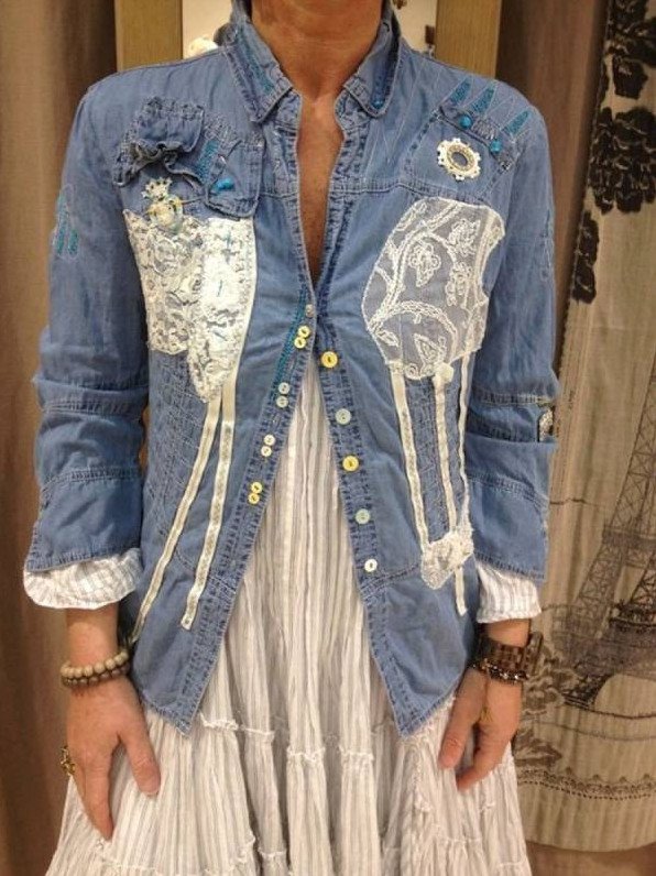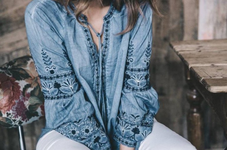 Блузки джинсовые в стиле бохо.