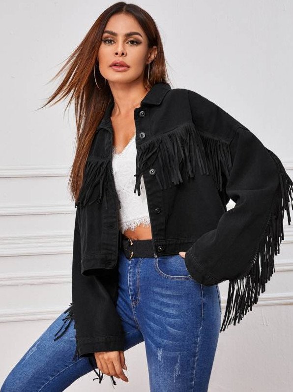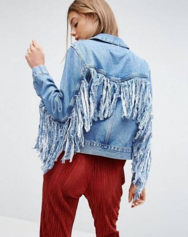 Джинсовая куртка женская с бахромой.