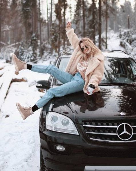 Восхитительные женщины и внедорожники в зимнюю пору.
