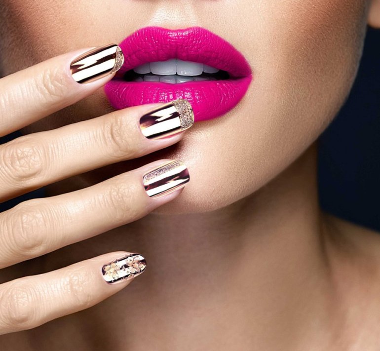 Маникюр золото металлик.