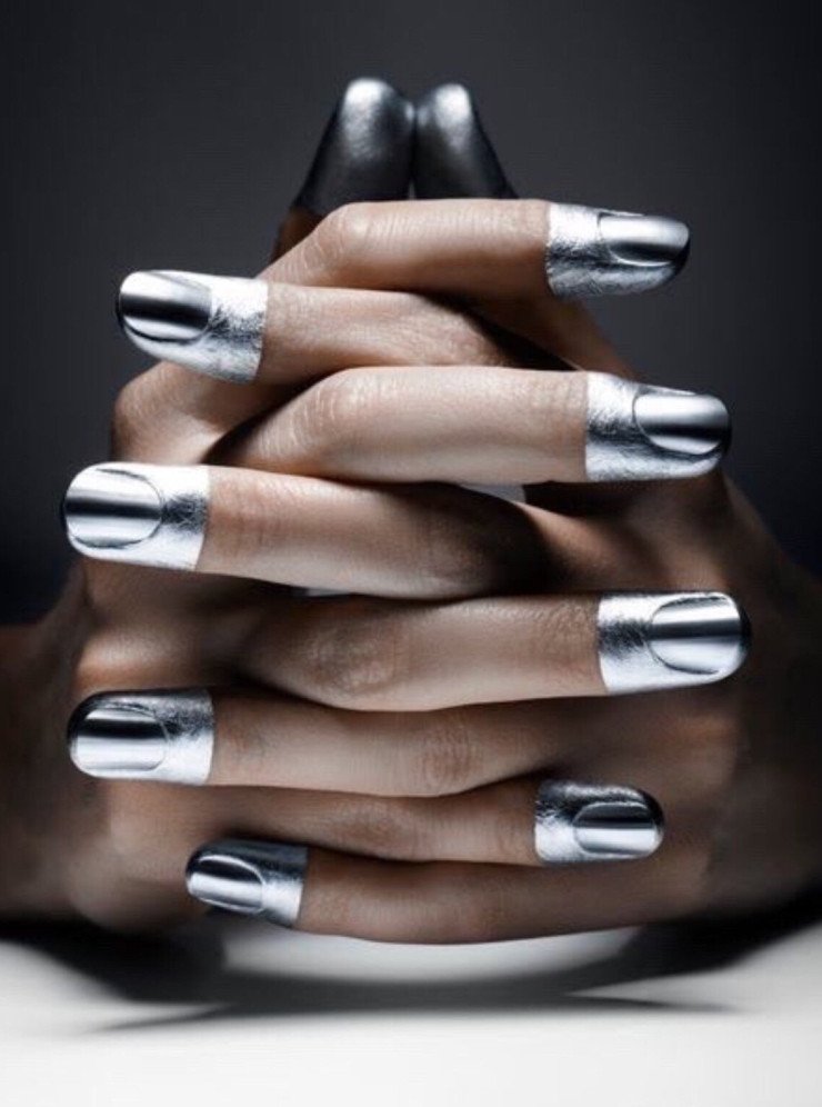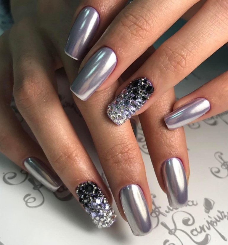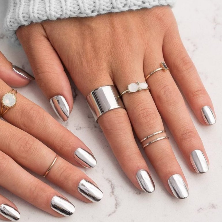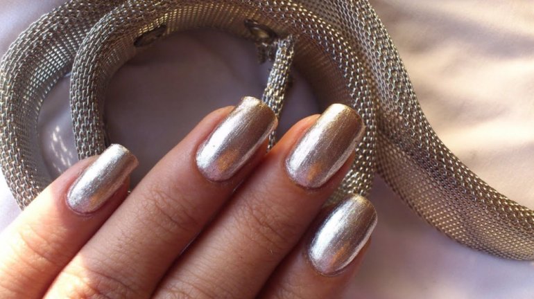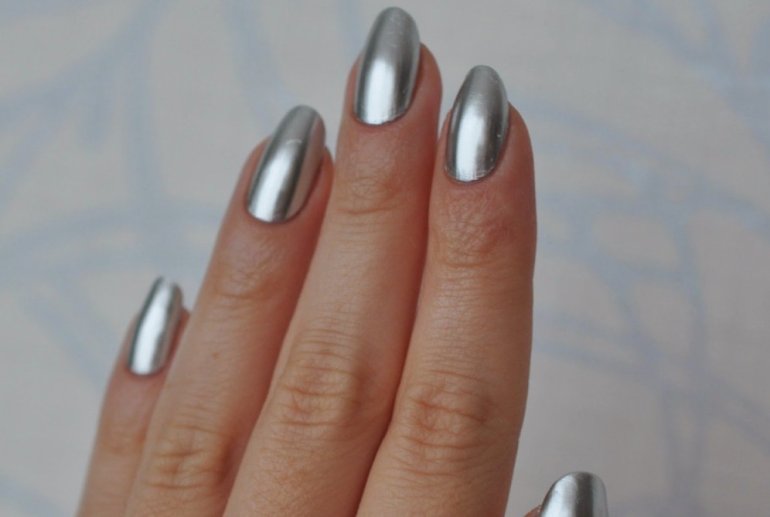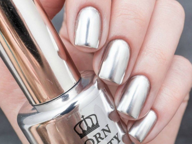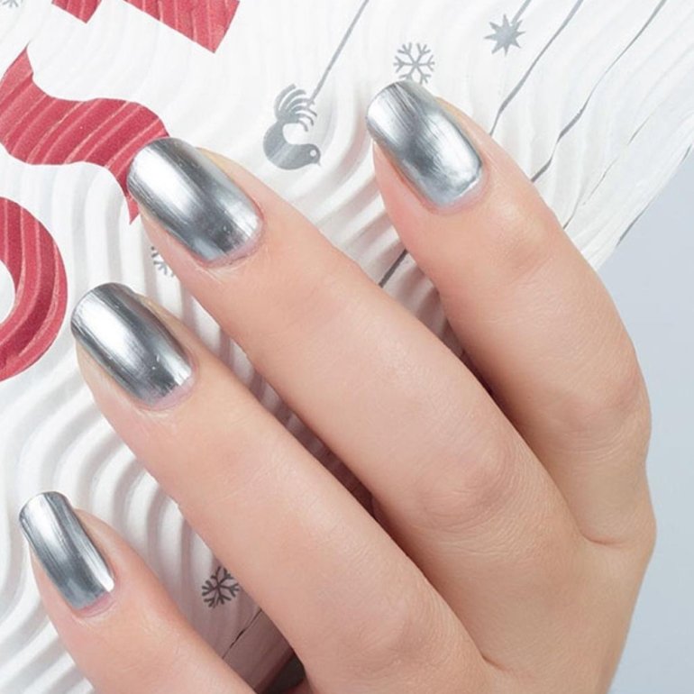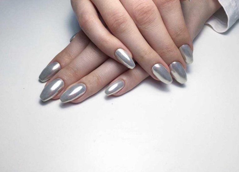Маникюр серебристый металлик.