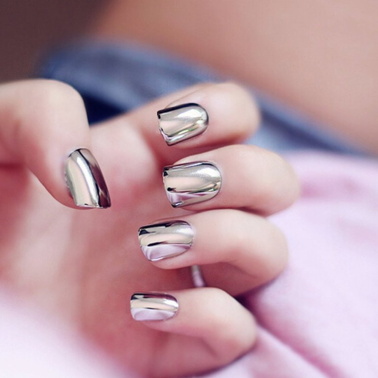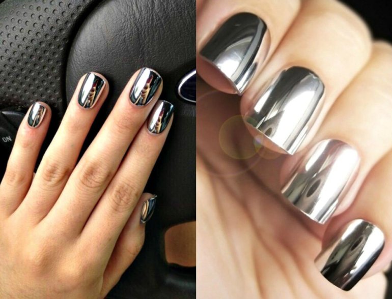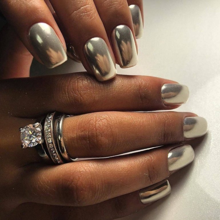 Зеркальный маникюр.