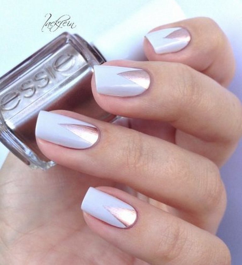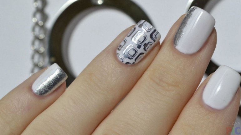 Бело серебристый маникюр.