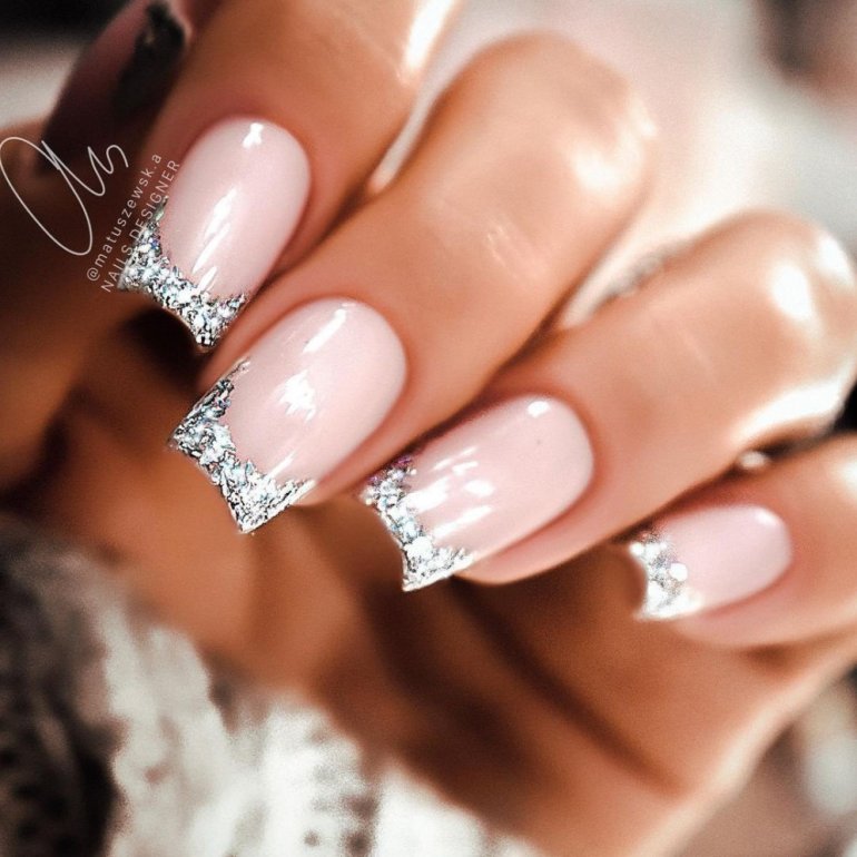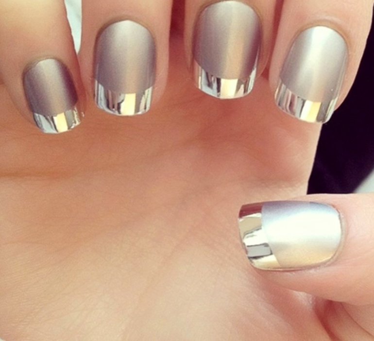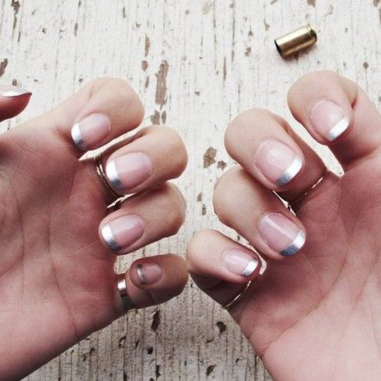 Французский маникюр металлик.