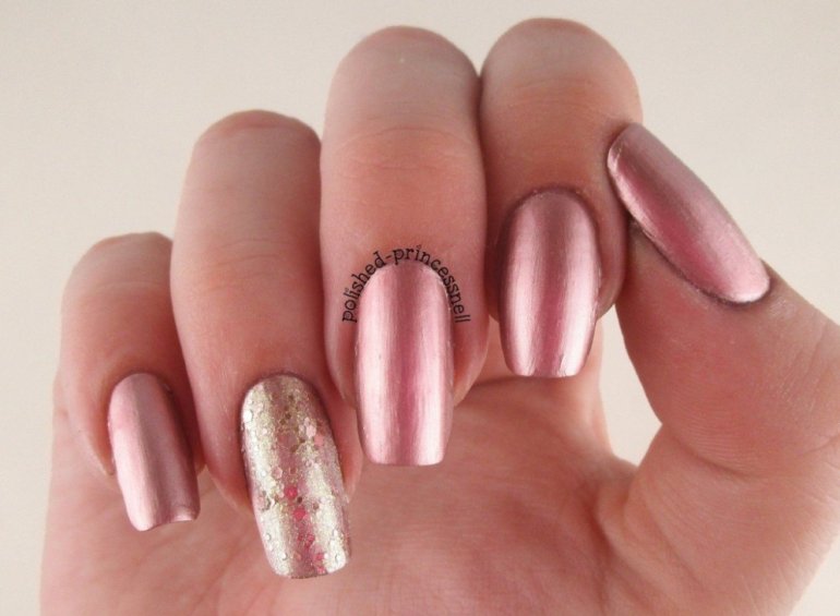 Маникюр розовый металлик.