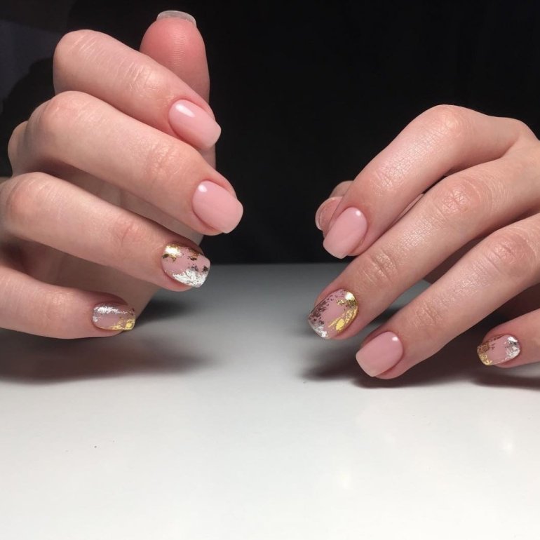 Розовый маникюр с фольгой.