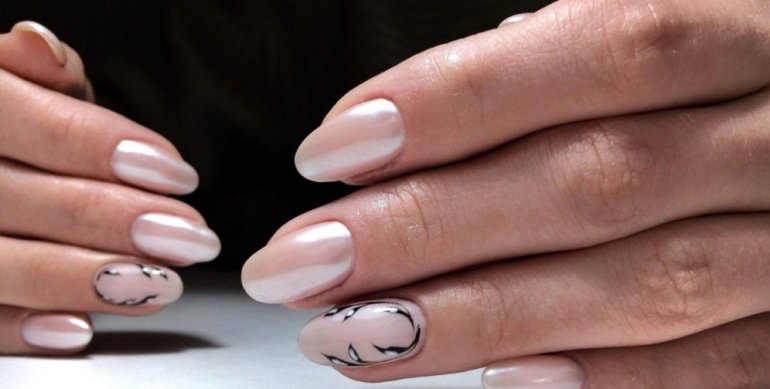 Жемчужный маникюр на недлинные ногти.