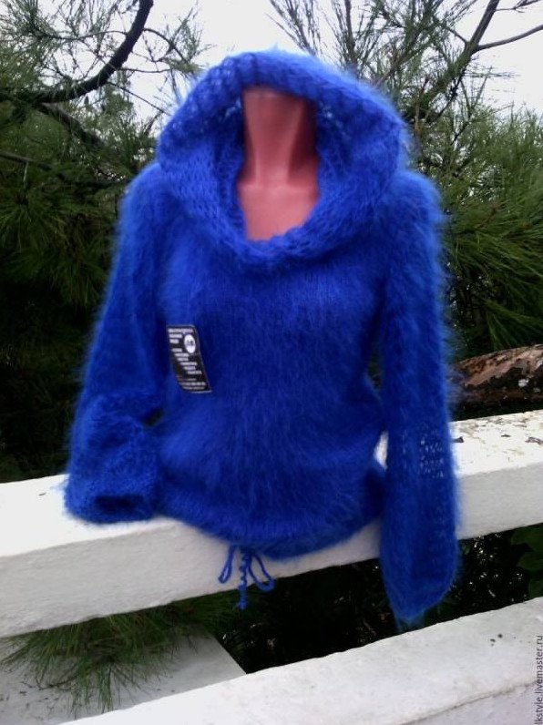 Мохеровый джемпер с капюшоном.