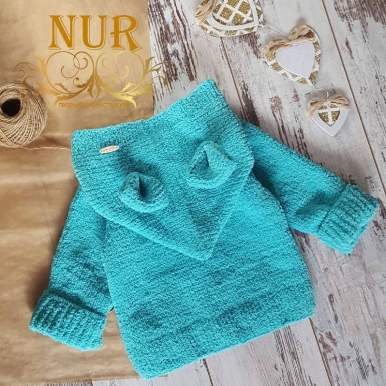 Детский кардиган из плюшевой пряжи.