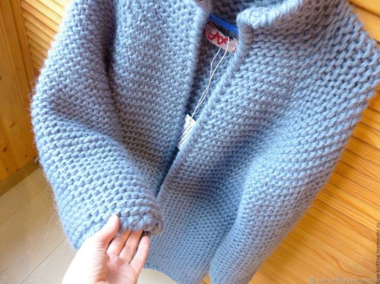 Кардиган платочной вязкой спицами.