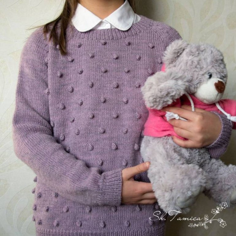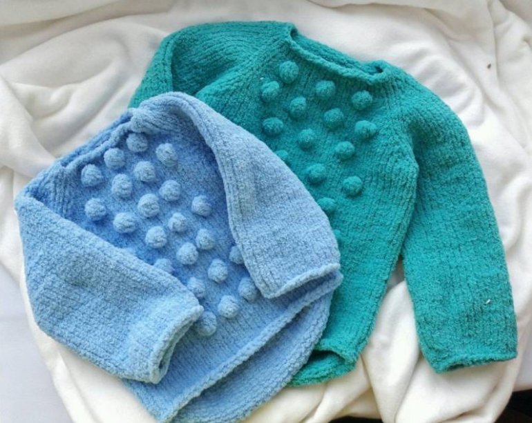 Детский свитер из плюшевой пряжи спицами.