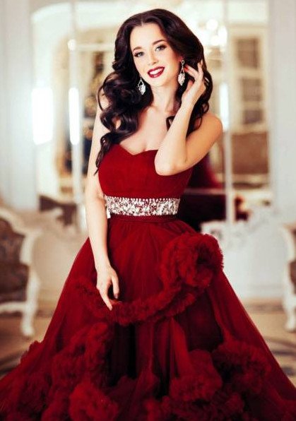 Девушка в Красном пышном прекрасное платье.