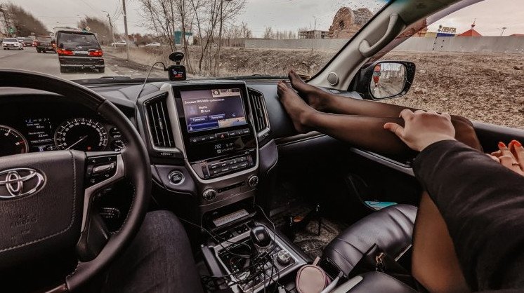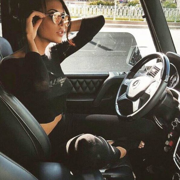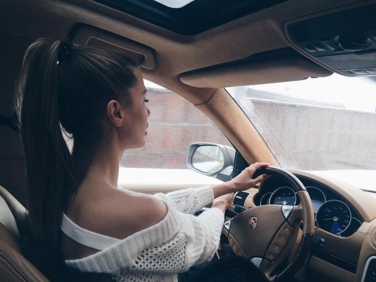 Девушка за рулём без лица.