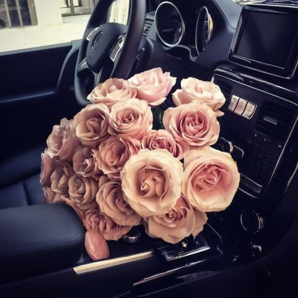 Красивый букет в машине.