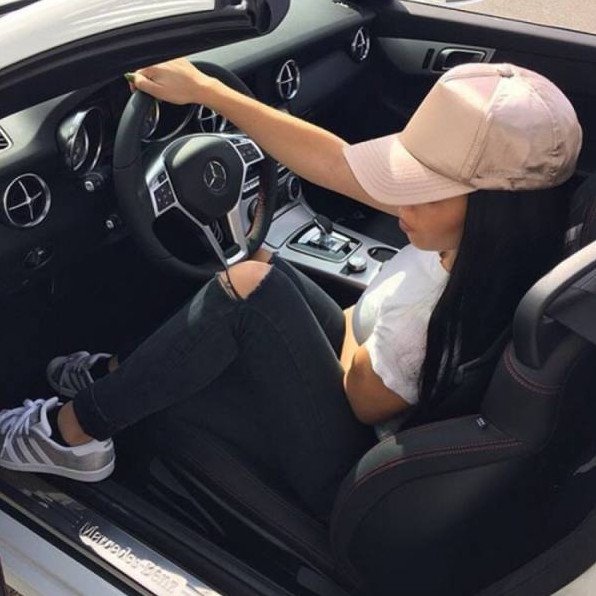 Девушка за рулем Мерседеса.