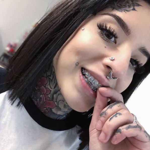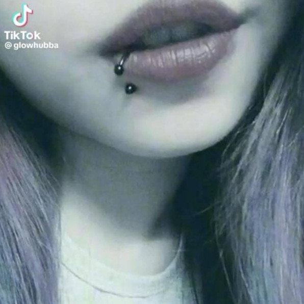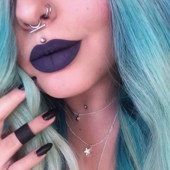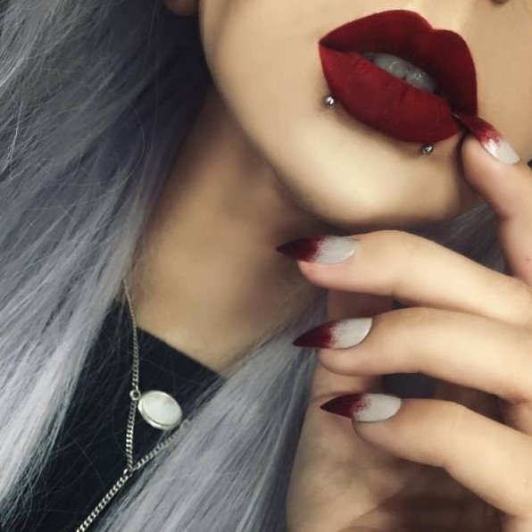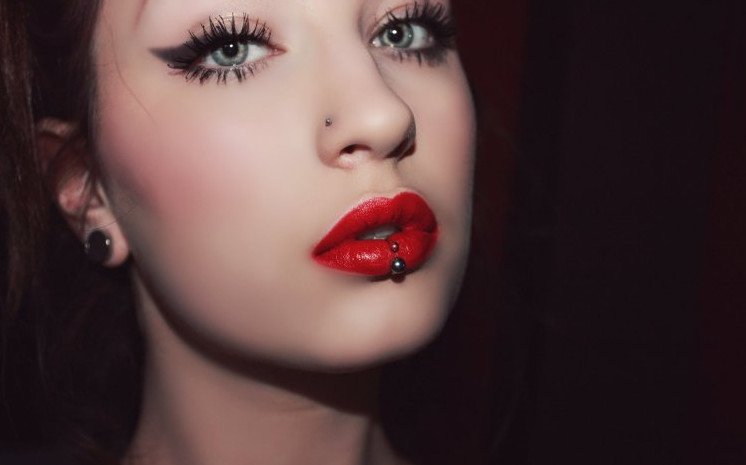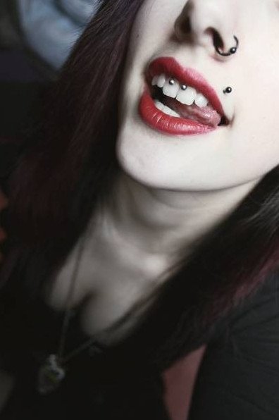 Помада с проколотой губой.