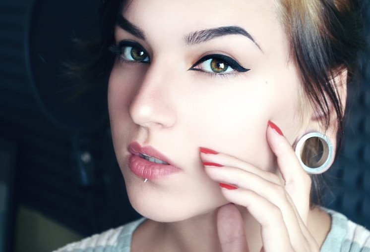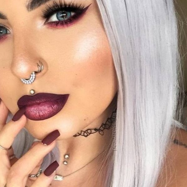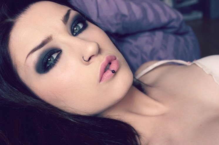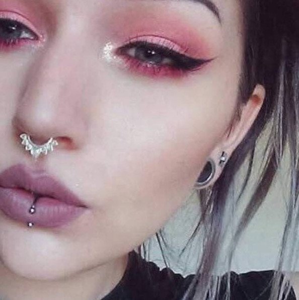 Красивый пирсинг и броский мейкап.