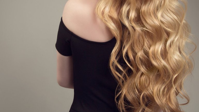 Волосы кудри блонд со спины.