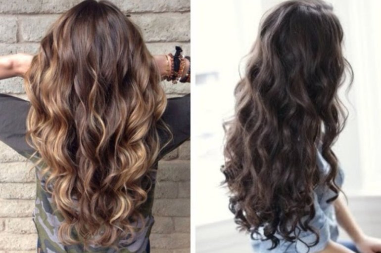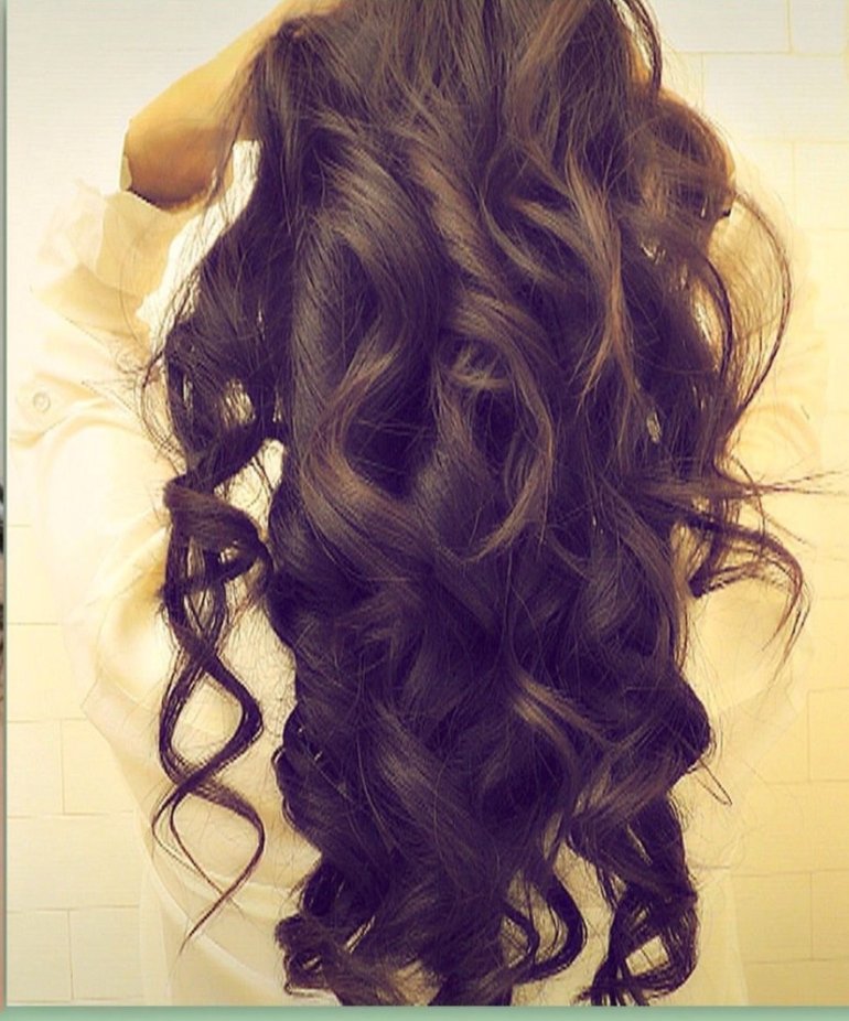 Локоны на длинные темные волосы.