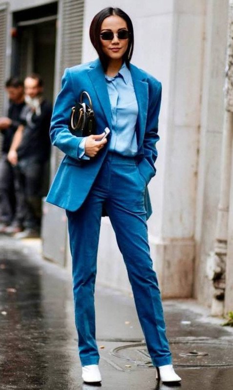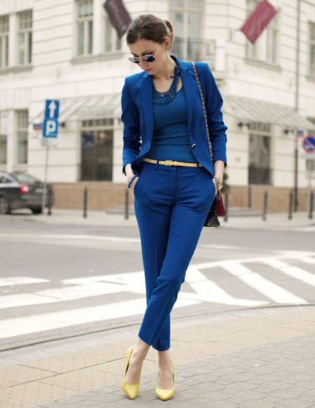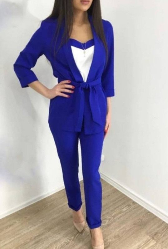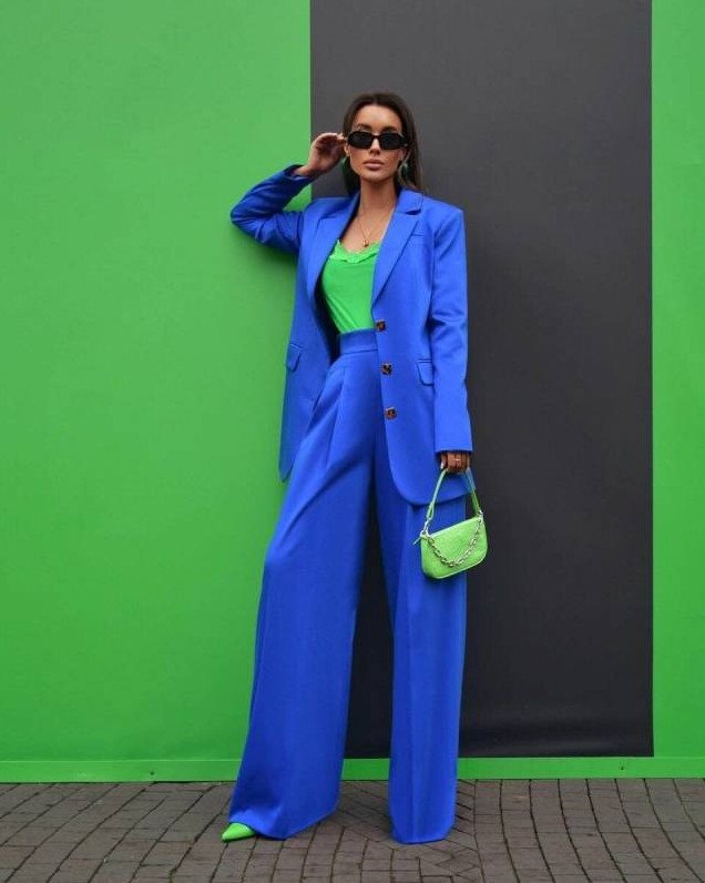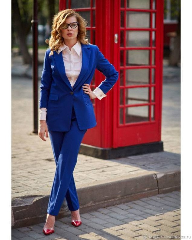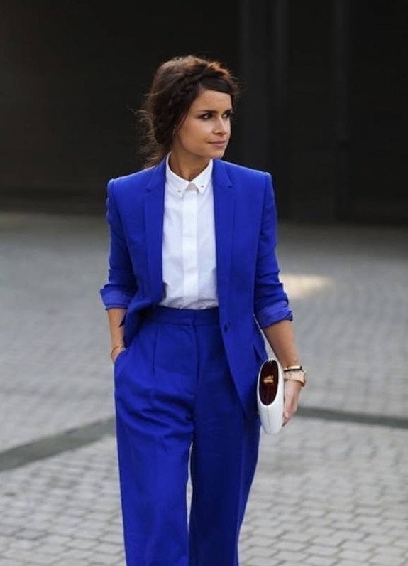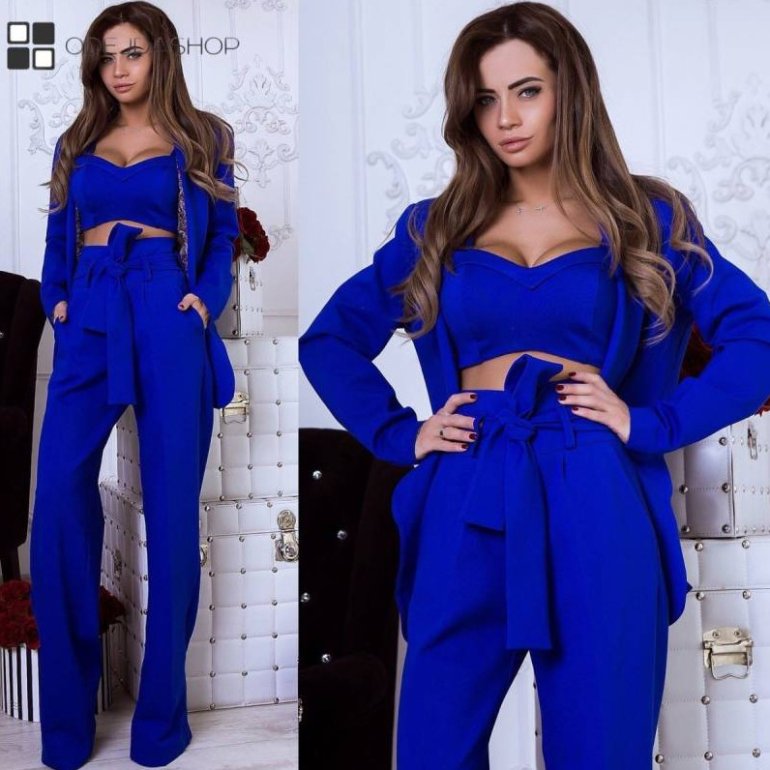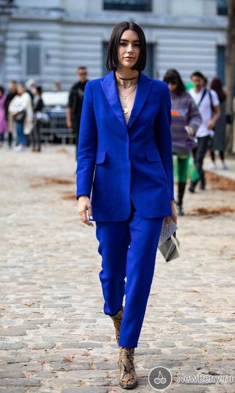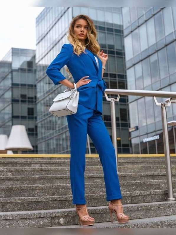 Брючный костюмчик в Глубочайшем голубом цвете на новый год Вог.