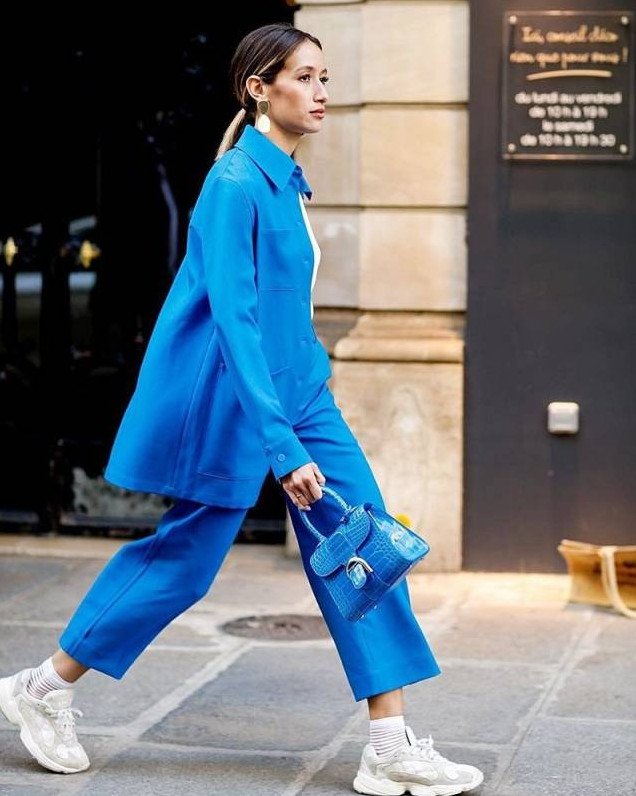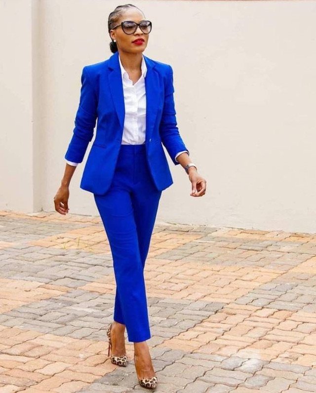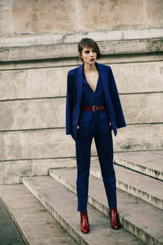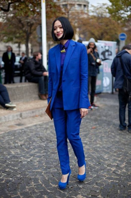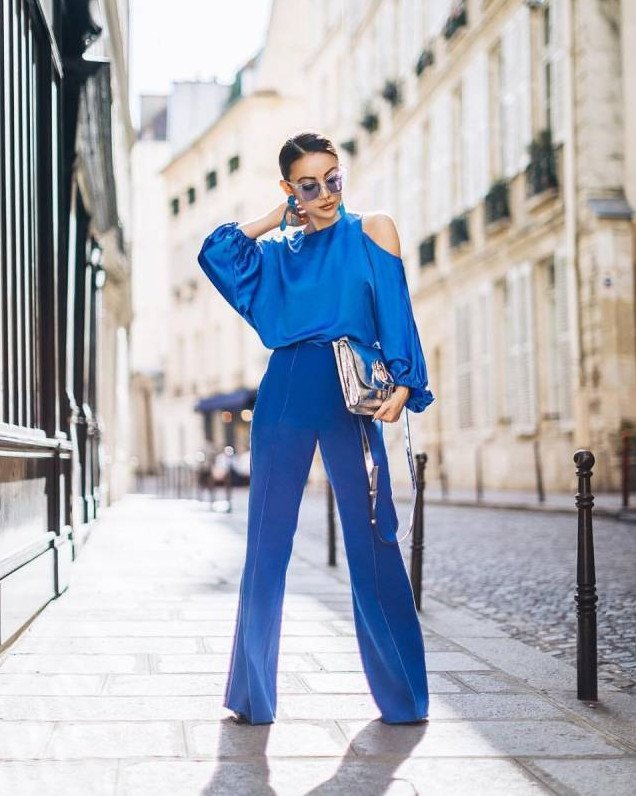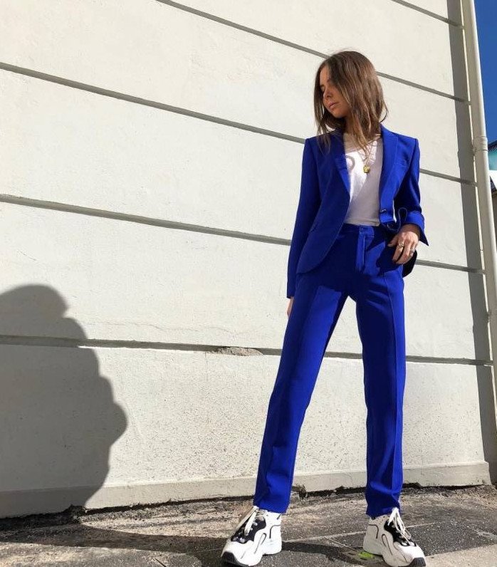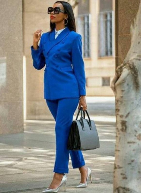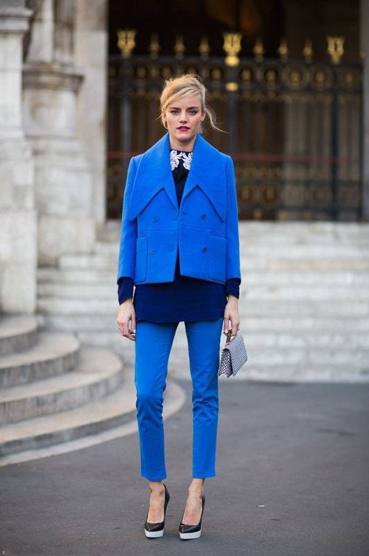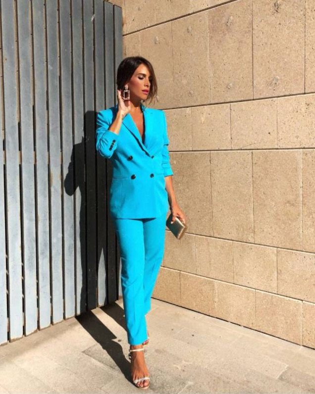 Брючный костюмчик в Глубочайшем голубом цвете на новый год Вог.