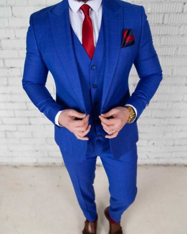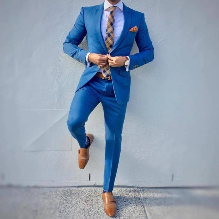 Ярко голубий костюмчик.