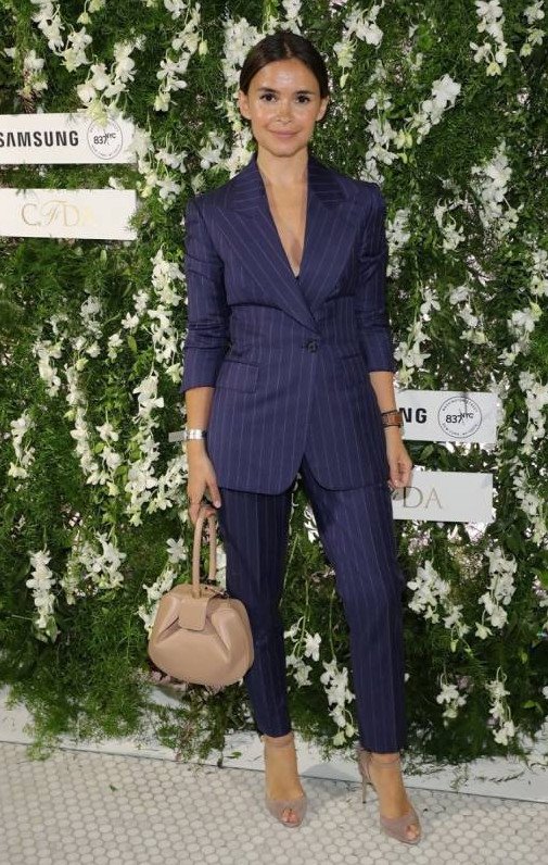 Виктория Лопырева в брючном костюмчике.