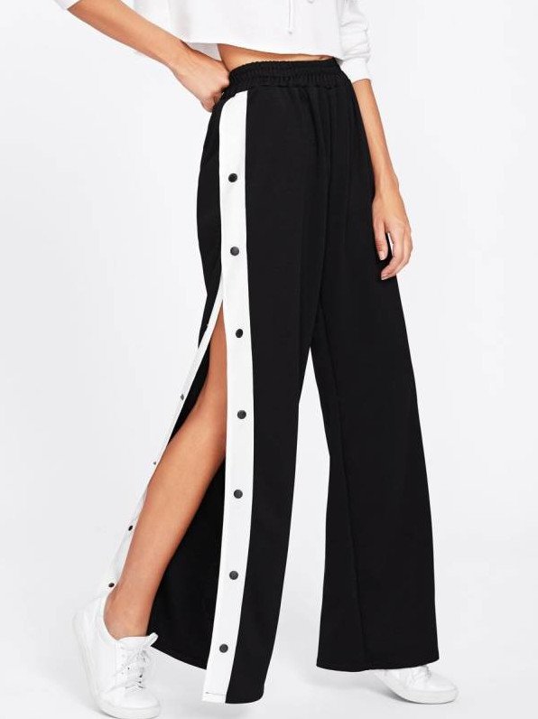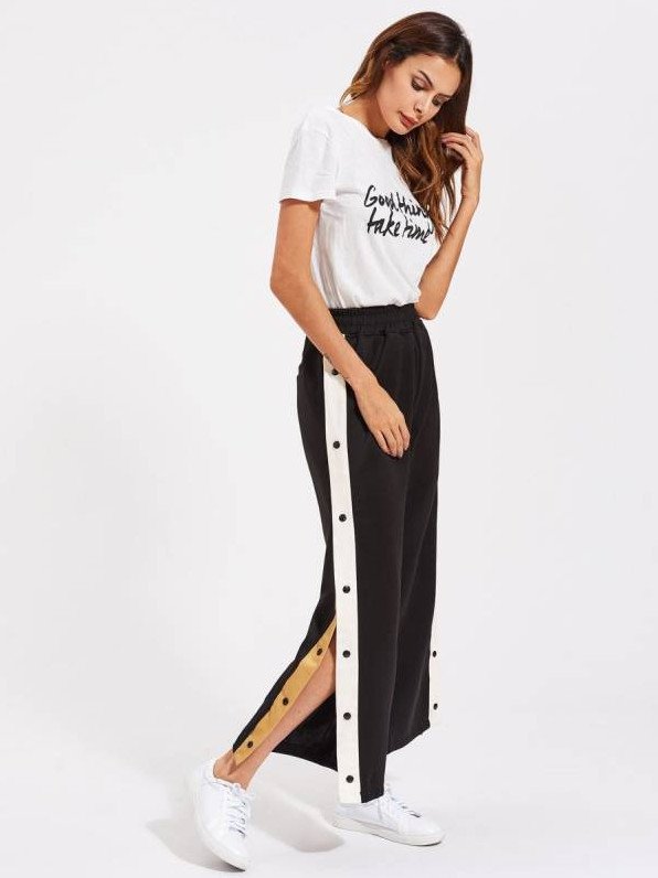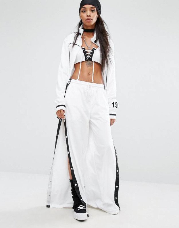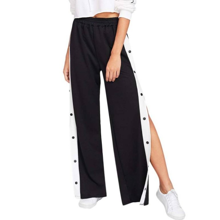 Широкие спортивные штаны с разрезами.