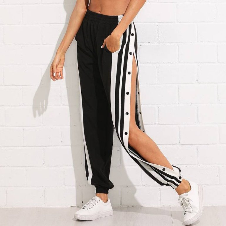 Спортивные штаны с прорезями.