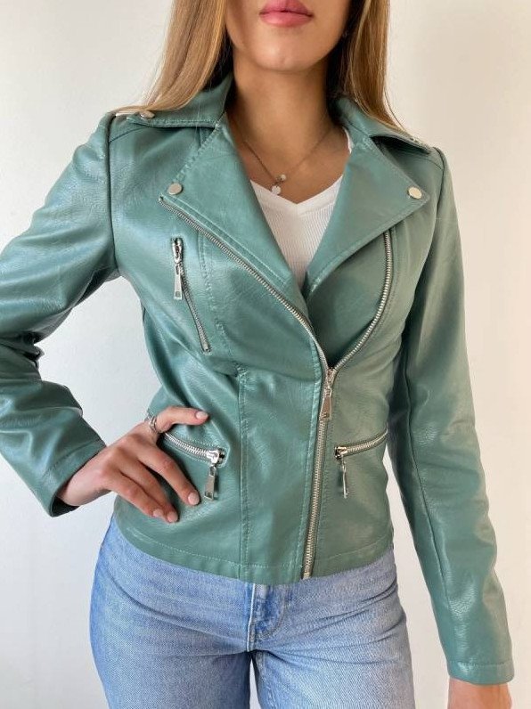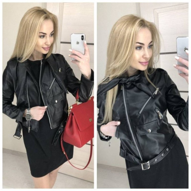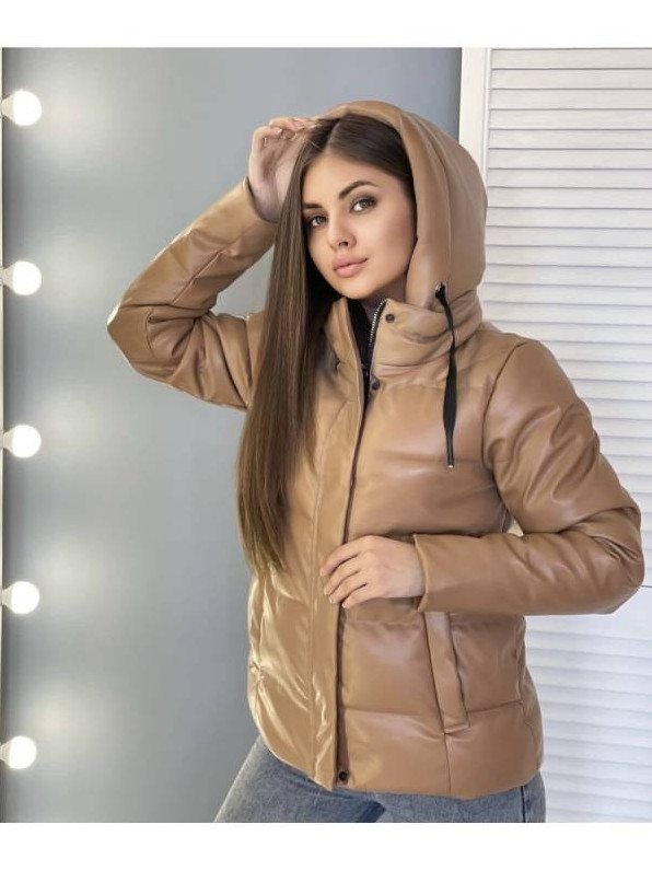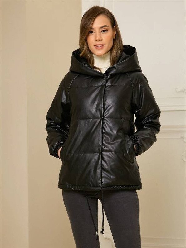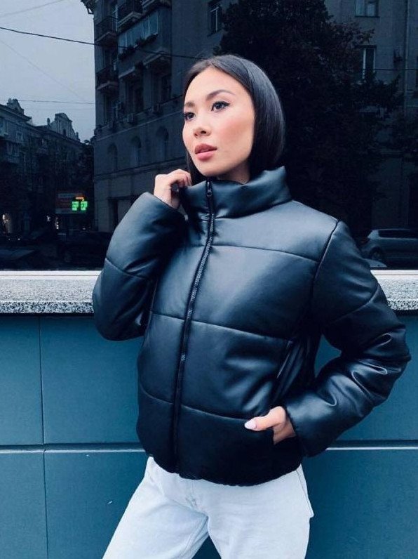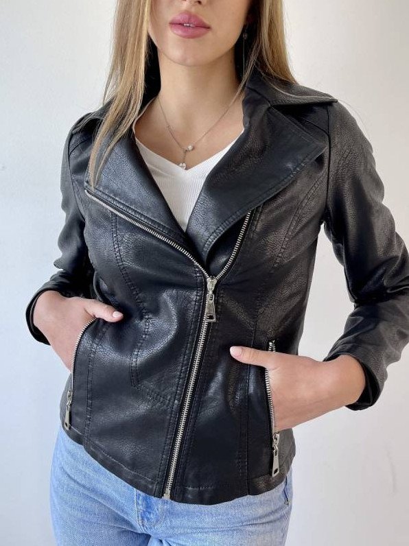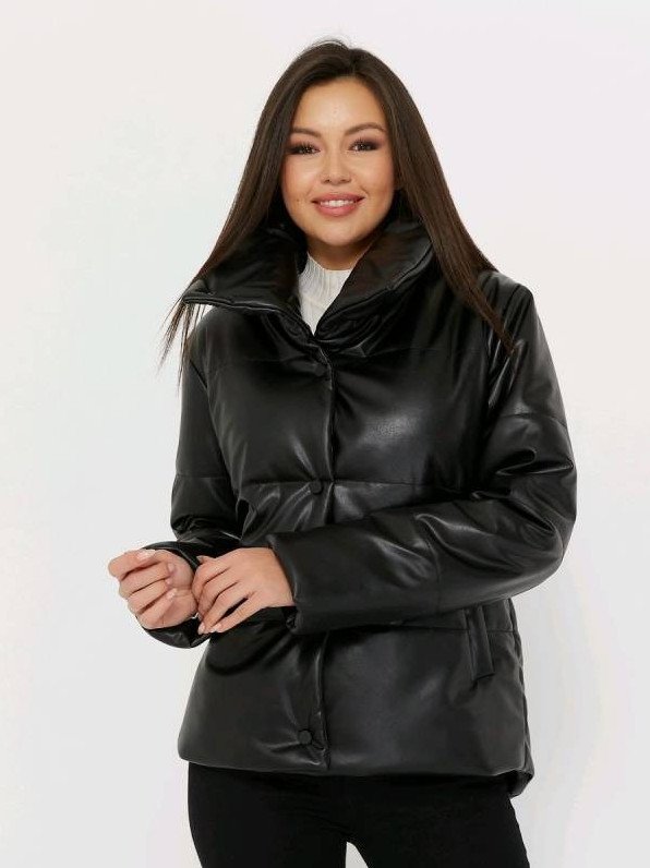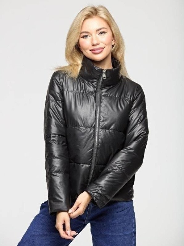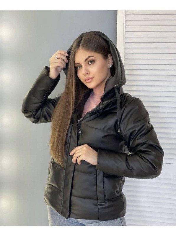 Демисезонная узкая куртка-жакет из экокожи "karo" 1202.