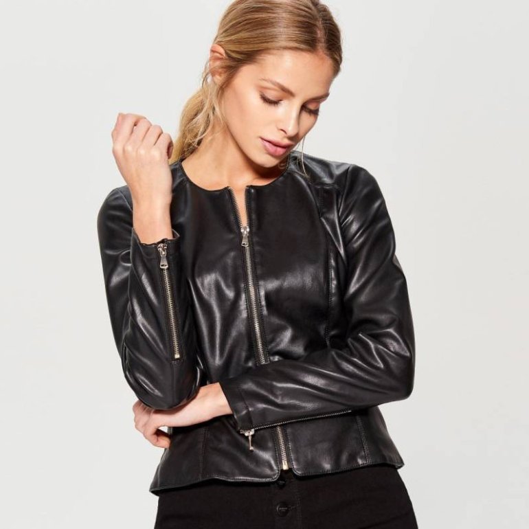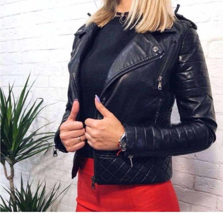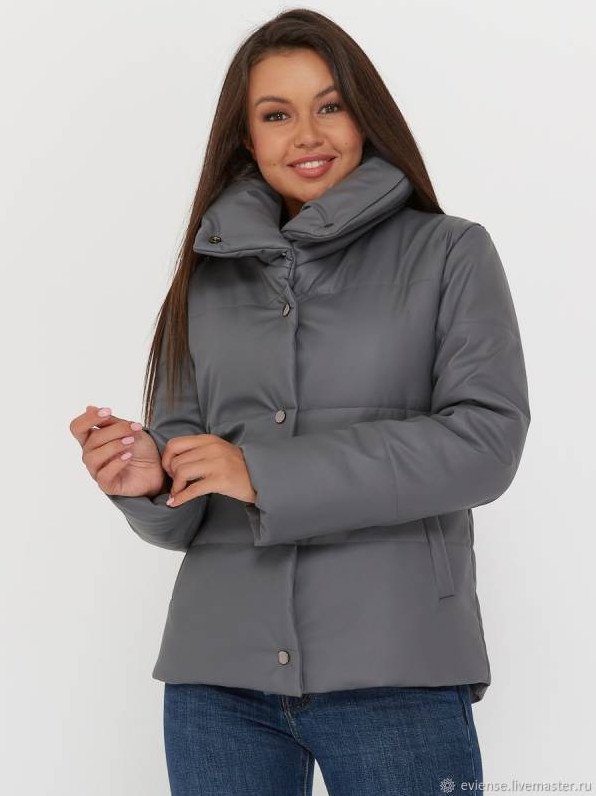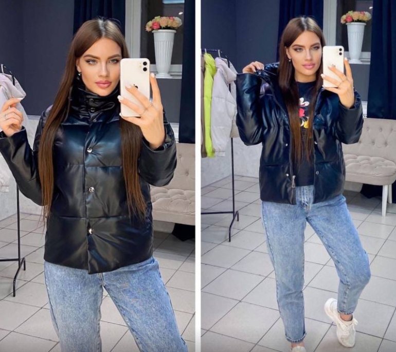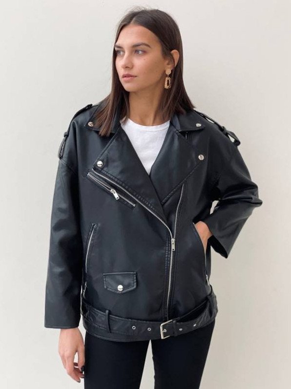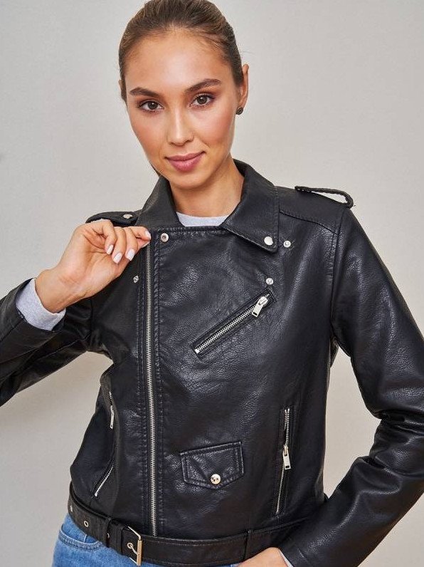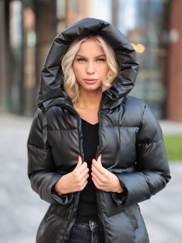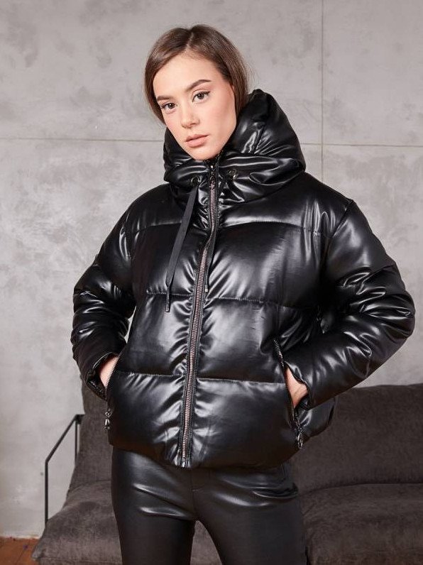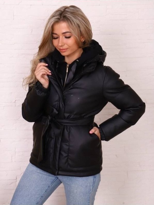 Демисезонная узкая куртка-жакет из экокожи "karo" 1202.