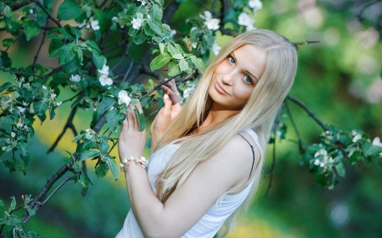 Прелестная красивая женщина со светлыми волосами.