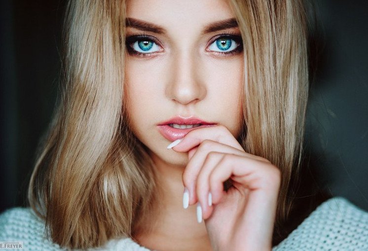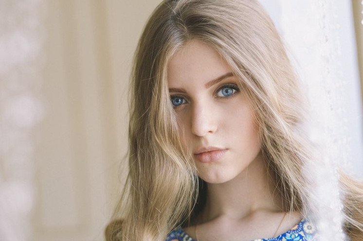 Красивая девушка с голубыми глазами.