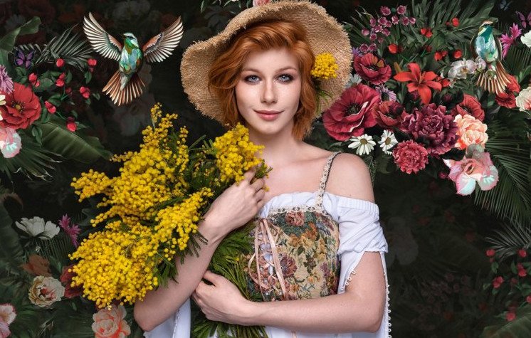 Девушка цветы 8 марта.