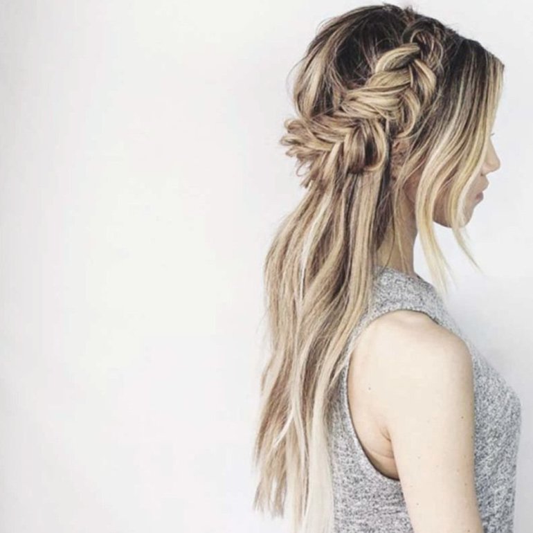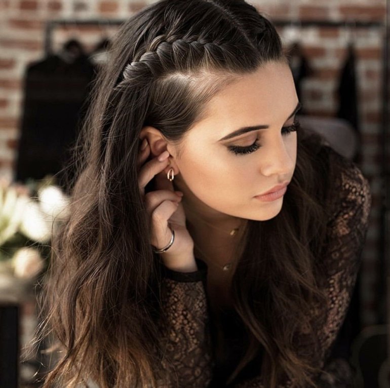 Прическа с косичками и распущенными волосами.