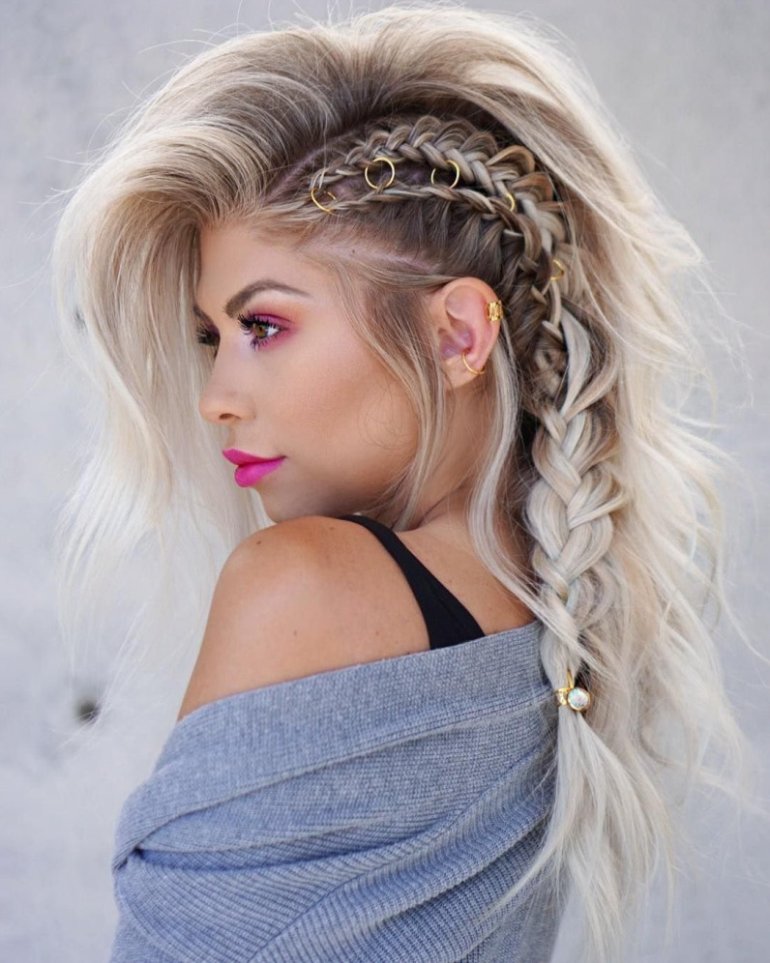 Богемные косички впереди с кольцами.