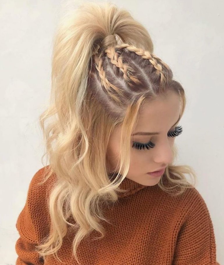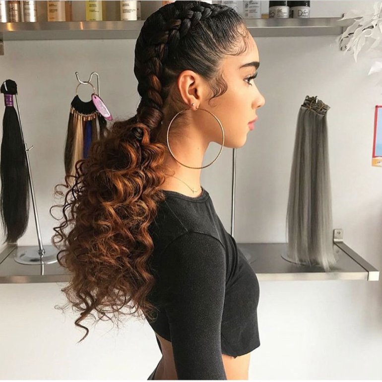 Хвост с кудряшками и косичками.