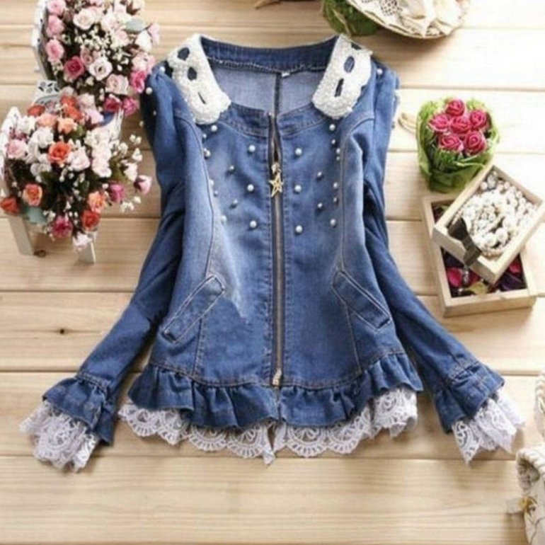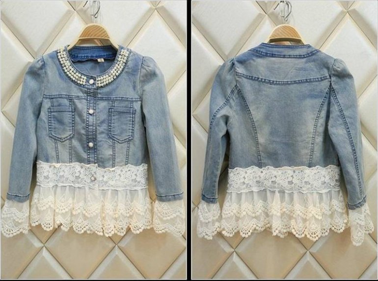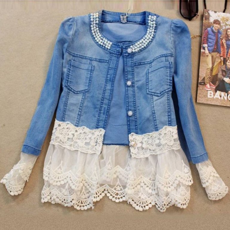 Джинсовая куртка с кружевом.