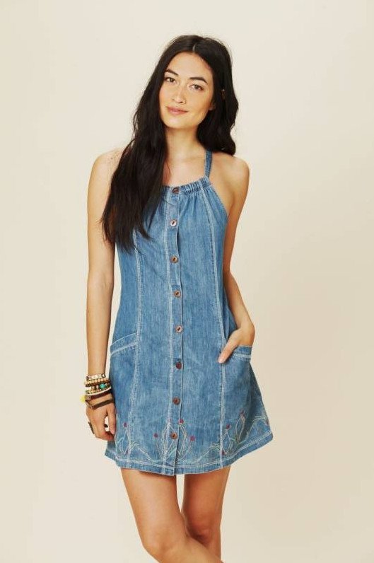 Джинсовое платье в стиле бохо.