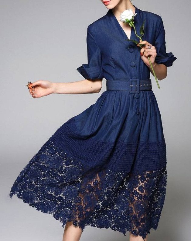 Джинсовый сарафан с кружевом.