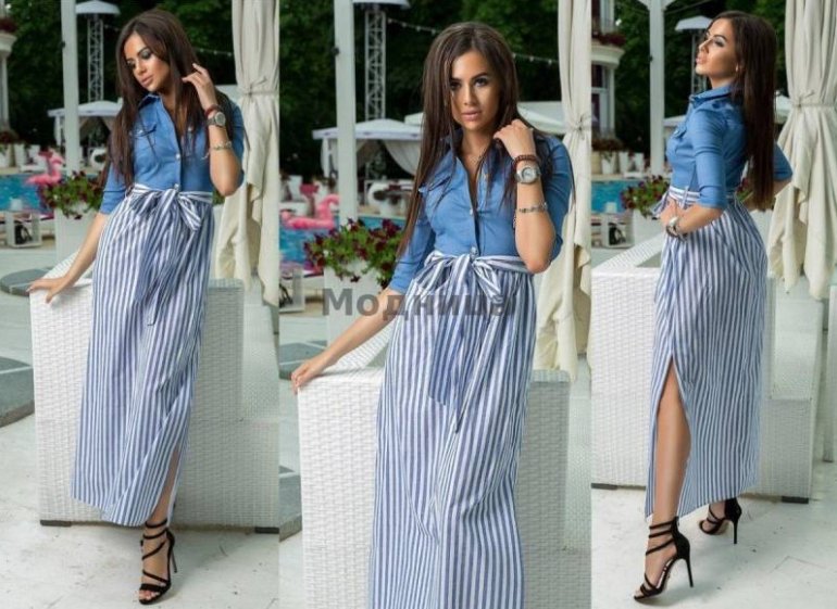 Платье с джинсовым верхом.
