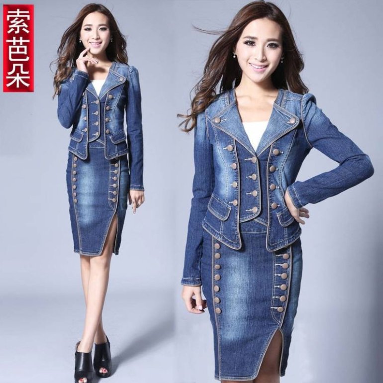 Джинсовый костюмчик дамский с юбкой.
