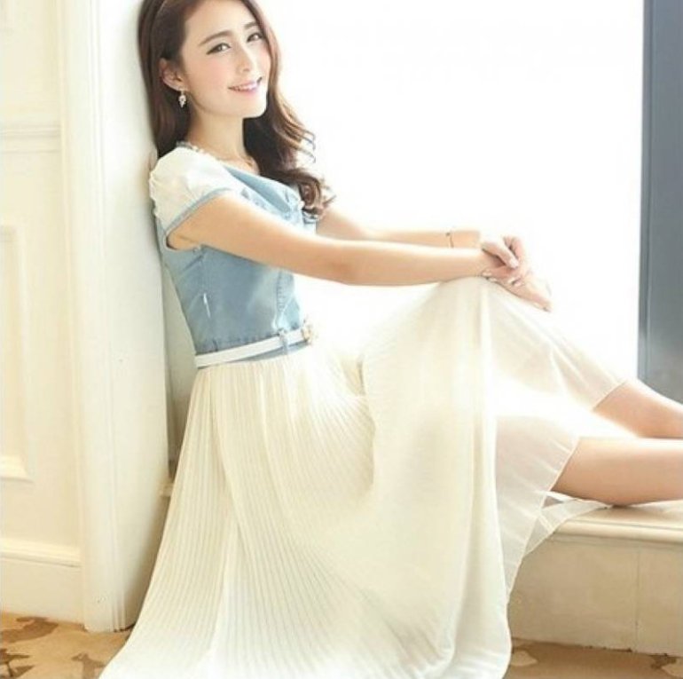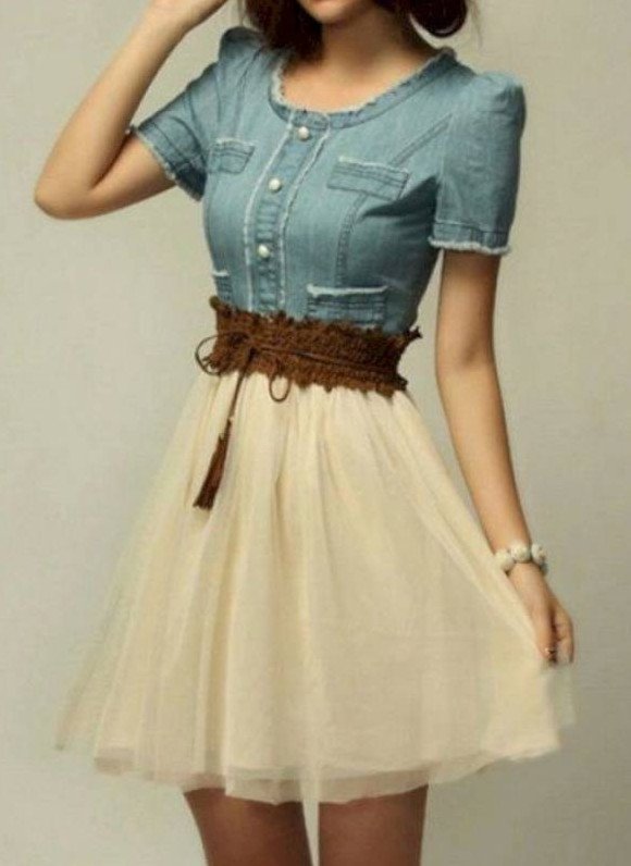 Платье для девушки с джинсовым верхом.